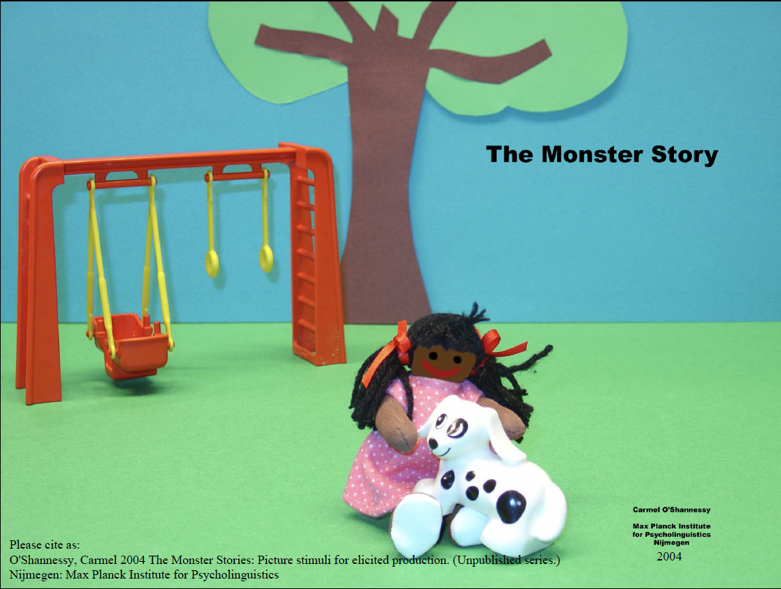 Please cite as: O’Shannessy, Carmel 2004 The Monster Stories: Picture stimuli for elicited production. (Unpublished series.) Nijmegen: Max Planck Institute for Psycholinguistics
