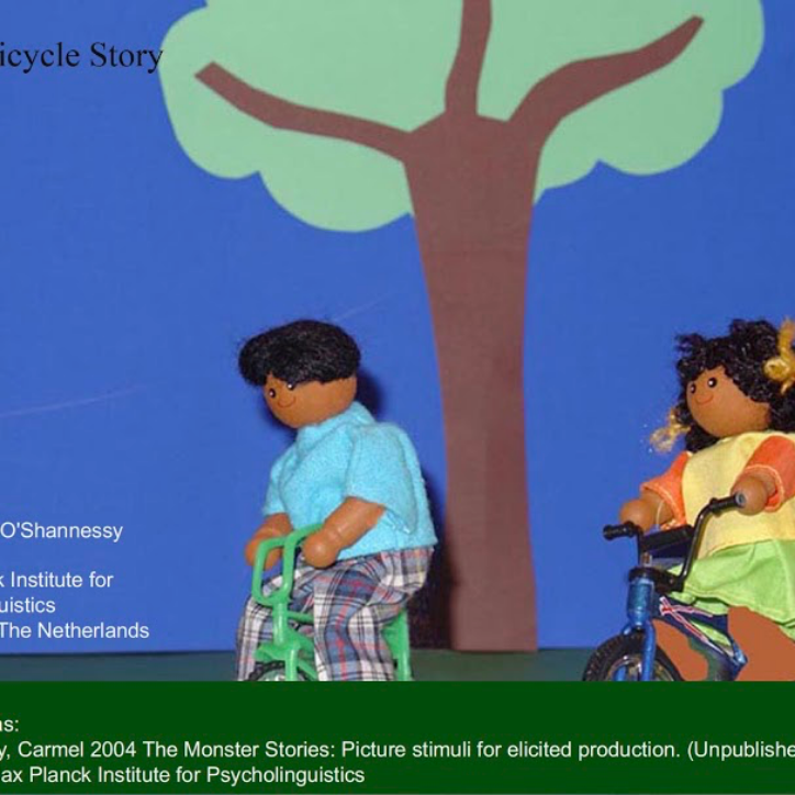 Picture book stimuli - children and adults tell a story following the pictures. Speakers are free to use their own words to tell the story how they want to. To get a download link to the picture books, please contact <Carmel.O'Shannessy@anu.edu.au>